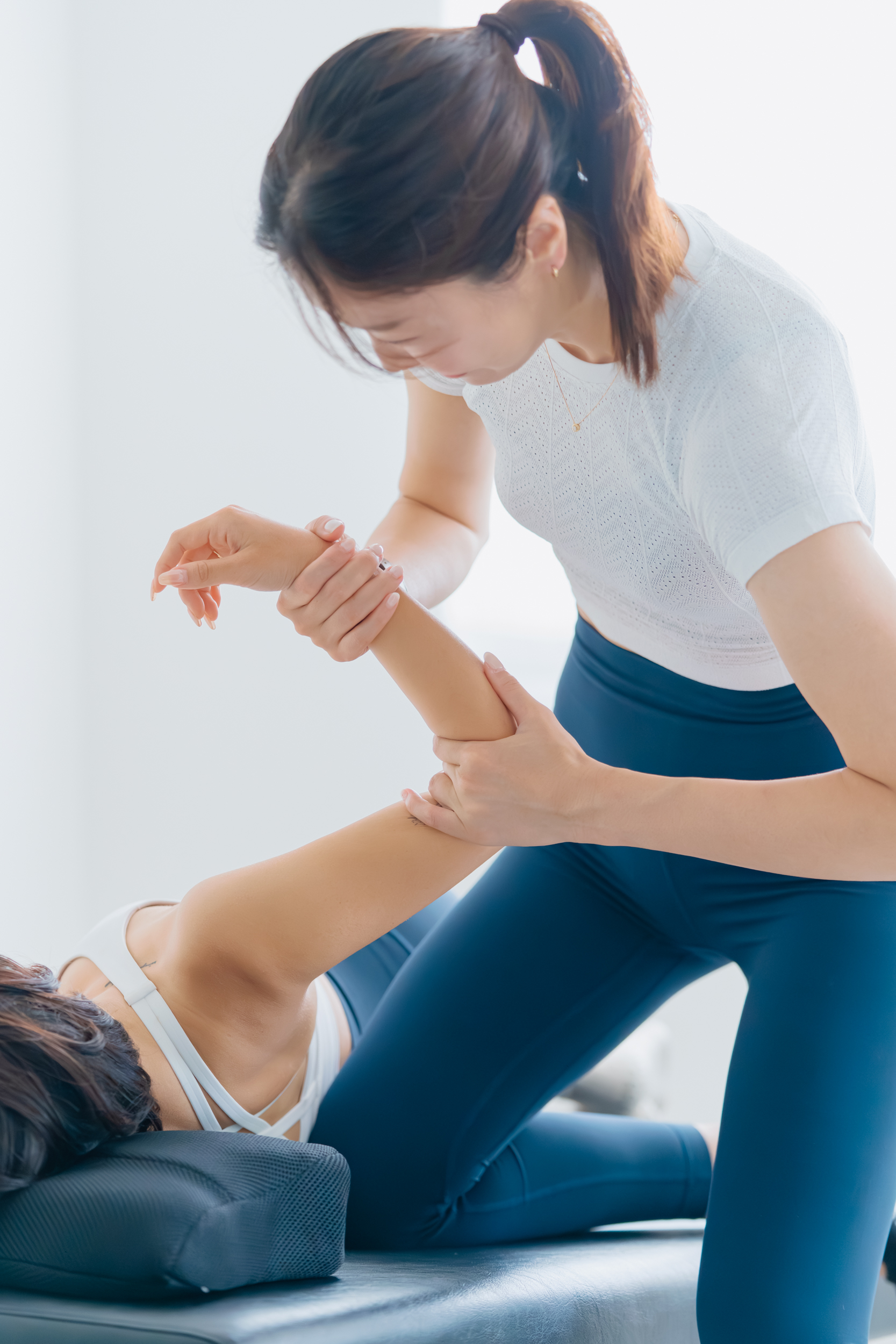 ・硬くなっている筋肉や関節の可動域を見極め